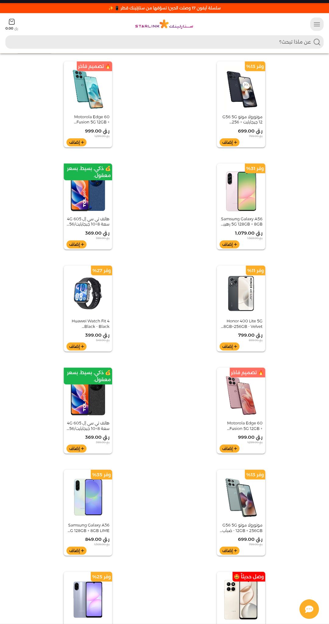 لمحبي الأداء العالي والتصوير الممتاز دون دفع مبالغ كبيرة، تقدم ستارلينك قطر تخفيضات مميزة على هواتف أونر، موتورولا، وسامسونج.